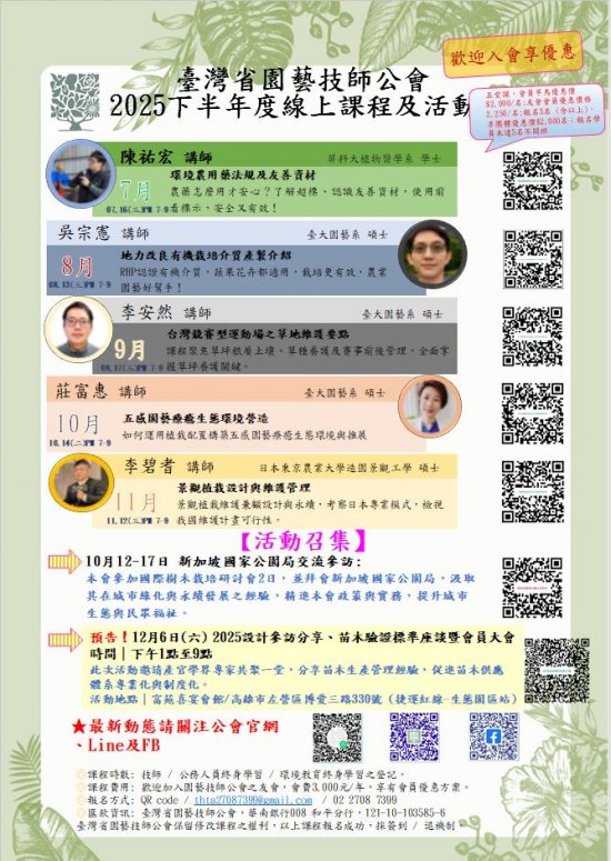 園藝技師公會辦理114年下半年度之線上課程 及活動系列