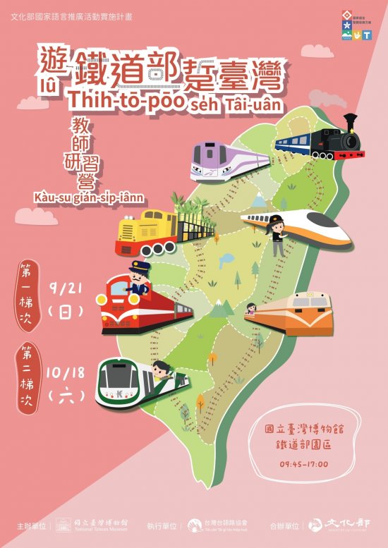 | 主旨: | 檢送本館辦理「遊鐵道部踅臺灣」臺灣台語教案教師研習營活動簡章1份,敬請惠予轉知所屬並鼓勵踴躍參加。 |