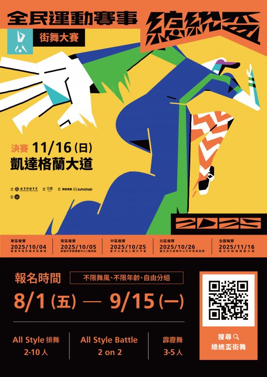 教育部體育署辦理「2025 總統盃全民運動賽事—街舞大賽」延長報名資訊,歡迎所屬單位或民眾踴躍報名!!