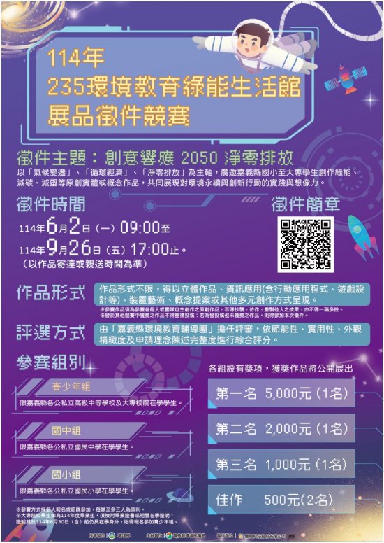 (三) 國小組:限嘉義縣各公私立國民小學在學學生。