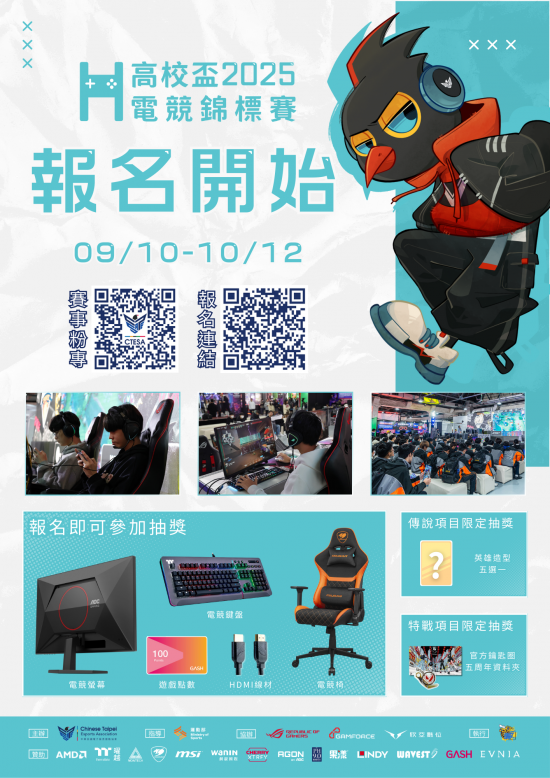 (六)報名出賽抽獎獎項:電競椅、電競螢幕、電競鍵盤、GASH點數等。