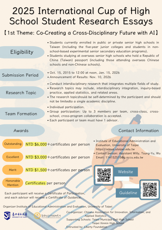 二、2025國際盃高中生小論文競賽之重要資訊如下: