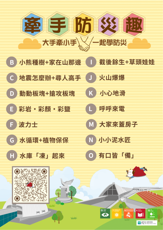 園區規劃旨揭活動,透過套裝課程,從多元主題來認識地震與防災,推廣地震科學、建築安全及防災教育。活動資訊如下: