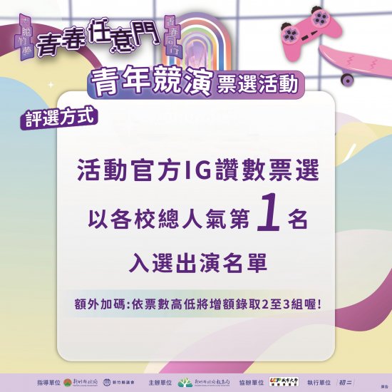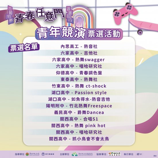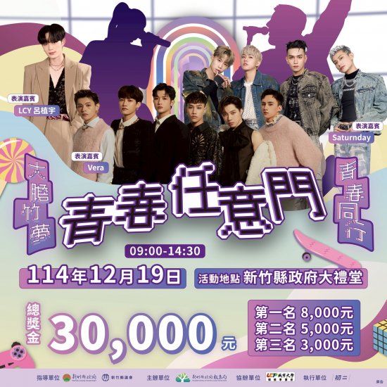 新竹縣政府教育局辦理「114年新竹縣成年禮-青春任意門」青年競演遴選活動,鼓勵所屬及民眾踴躍投票。
