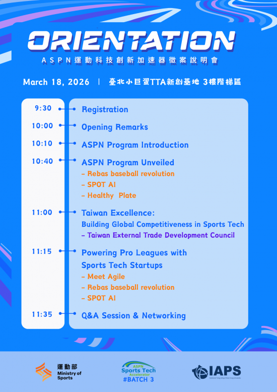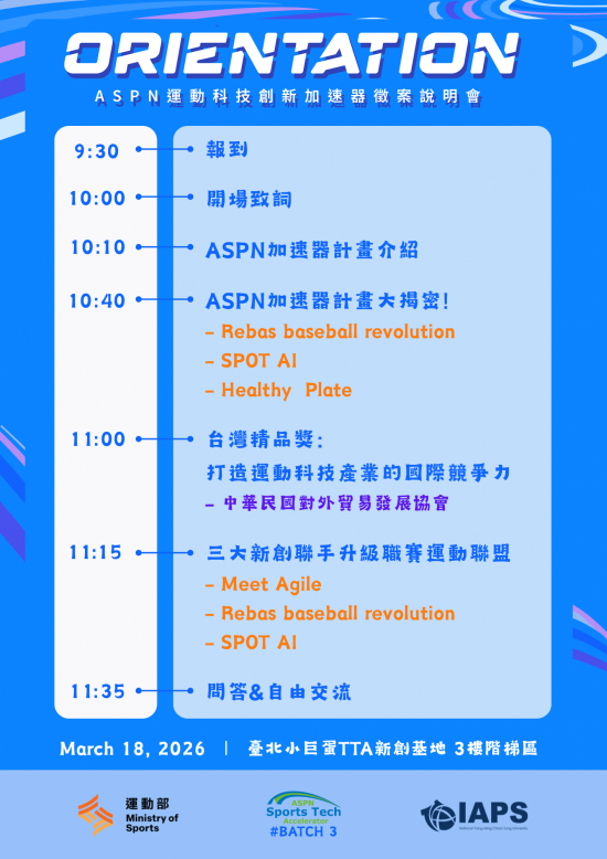 轉達運動部函送「2025-2026 ASPN國際運動創新網絡專案計畫」第3期徵案說明會資訊,請相關單位踴躍參與。