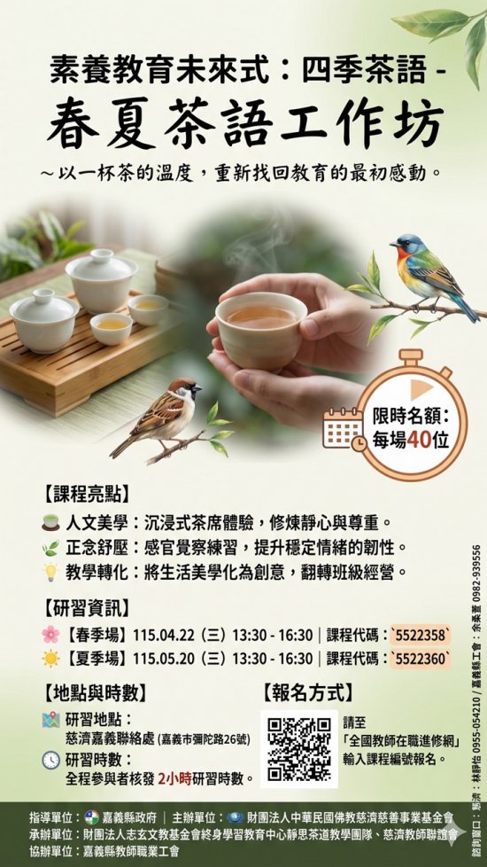 春季茶語:115.04.22(三)下午13:30~16:30 課程編號:5522358